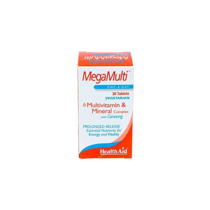 Health Aid Megamulti Con Ginseng 30 Comprimidos - Multivitamínico y Mineral con Ginseng para Energía y Bienestar