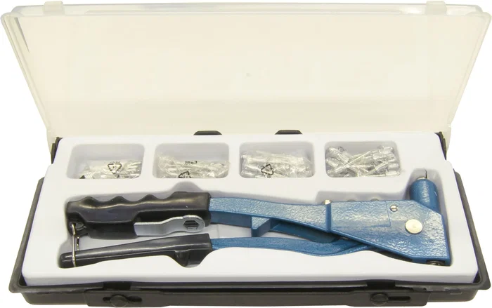 Juego de remachadoras - MEISTER - CP195270 - Incluye 100 remaches de aluminio - Maletín de plástico con tapa transparente