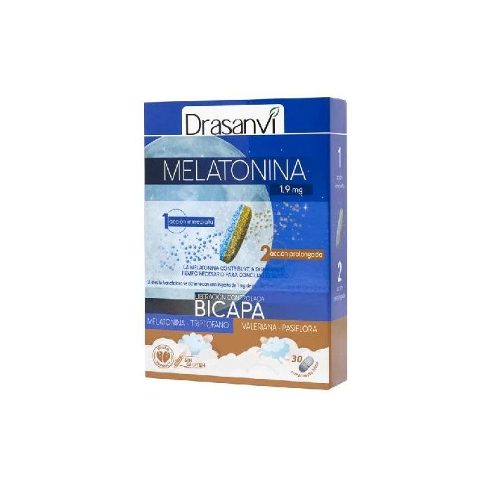 DRASANVI Melatonina Bicapa Retard 30 Comp. Ayuda a Conciliar el Sueño con Triptófano, Valeriana y Pasiflora