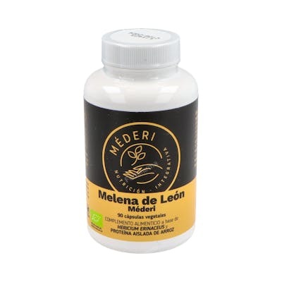 Composicion: Extracto orgánico de Melena de León (Hericium erinaceus, planta entera), proteína orgánica aislada de arroz, agente de recubrimiento (cápsula): hidroxipropilmetilcelulosa y antiaglomerante: AEROSIL® 200 F (dióxido de silicio). Por 3 cápsulas: Extracto orgánico de Melena de León 750,00 mg – De los cuales: Polisacáridos totales = 50% 225,00 mg 1,3-1,6-beta-glucanos = 15% 75,00 mg Alfa-glucanos = 5% 1.500,00 mg Proteína orgánica aislada de arroz 441,00 mg