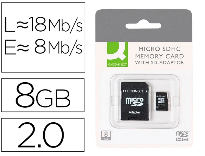 Tarjeta de memoria SD con adaptador micro para SD incluido. Perfecta para ampliar la capacidad de los dispositivos móviles y tabletas. Medidas: 32 x 24 x 2 mm.