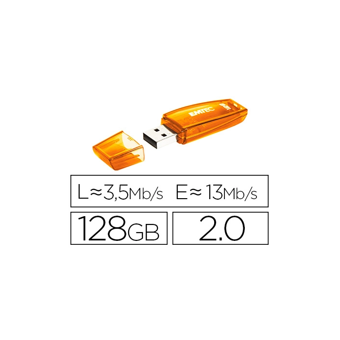 Emtec Memoria USB C410 128 GB 2.0 Naranja