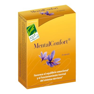 CIEN POR CIEN NATURAL Mentalconfort 30 Cápsulas | Azafrán, Cúrcuma, Vitaminas y Zinc para el Sistema Nervioso