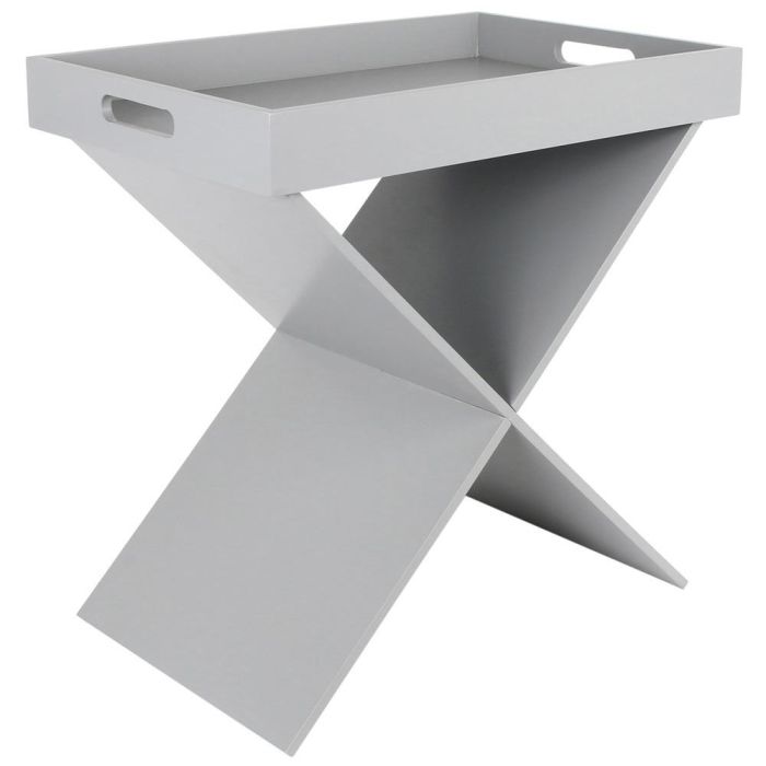- Mesa compuesta por una estructura desmontable en X sobre la que se apoya una bandeja con asas de quita y pon.