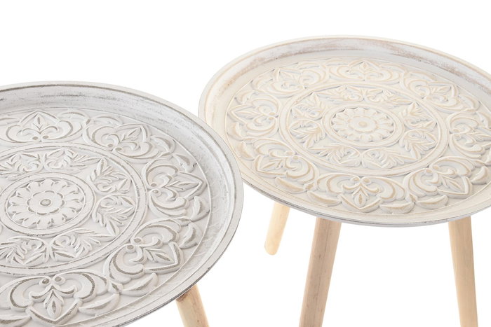 Mesita Auxiliar Arabe DKD Home Decor Marron Blanco 44 x 43 x 44 cm (2 Unidades)