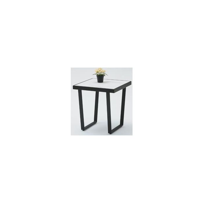DKD Home Decor Mesita Auxiliar Urban Blanco Negro Metal Cerámica 50 x 50 x 50 cm