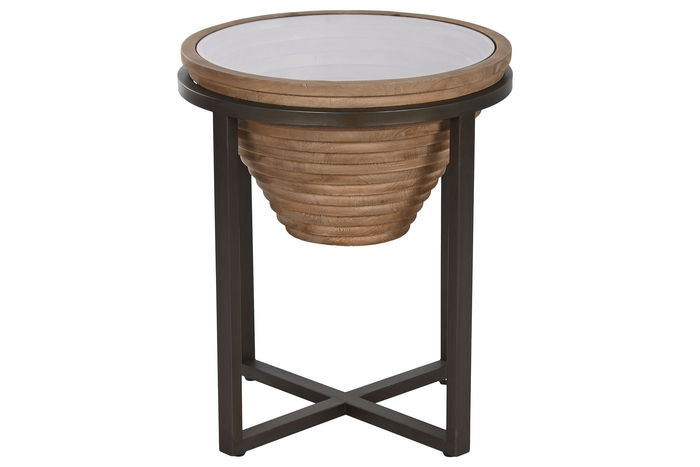 DKD Home Decor Mesita Auxiliar Moderno Natural Negro Madera y Cristal 46 x 55.5 x 46 cm