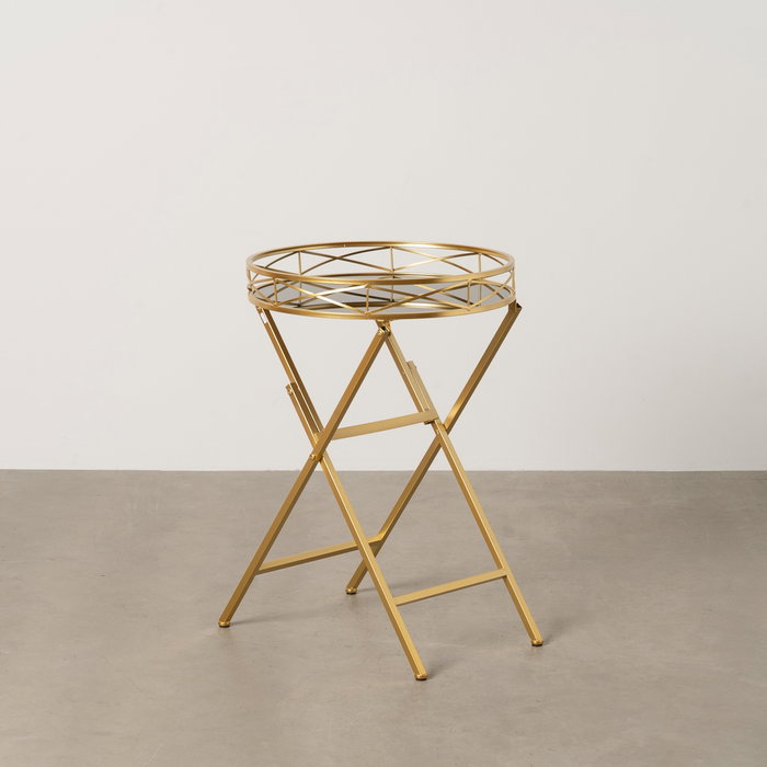 Mesita Dorado Metal-Cristal Decoración 51 X 49 X 71,30 cm