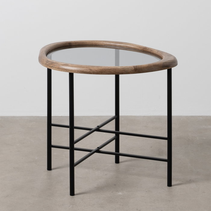 Mesita Natural-Negro Madera-Metal 61 X 50 X 53 cm
