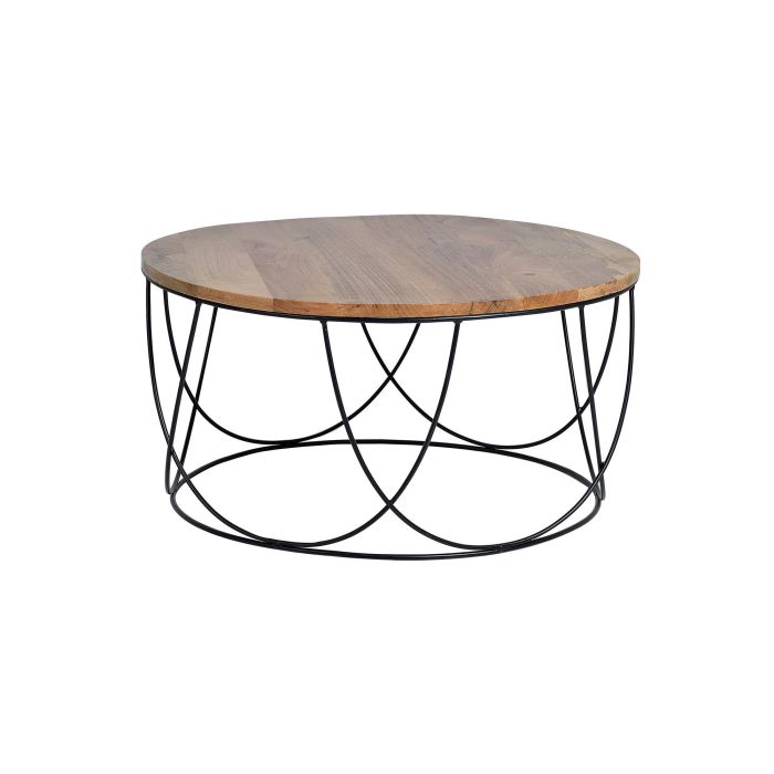 Mesa Centro GINER Y COLOMER en Madera de Mango y Metal Negro, 80 cm