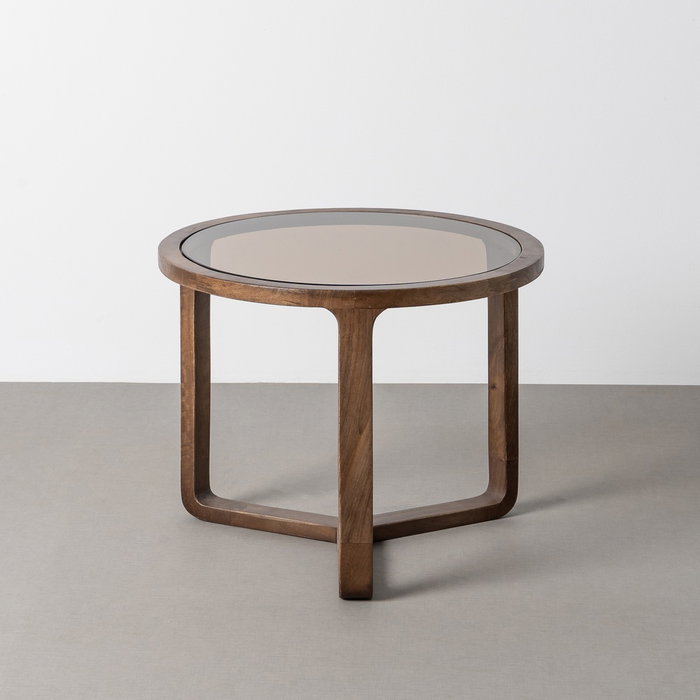 Mesa Centro Madera de Mango Salón 60 X 60 X 48 cm Cristal Color Ámbar.