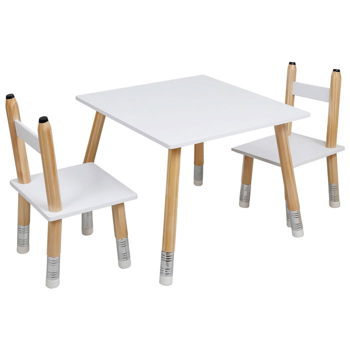 Home Deco Kids Conjunto Mesa y 2 Sillas Infantil Lápiz 55x55 cm Mesa 42,8 cm Altura Silla 51,5 cm Altura Asiento 23,5 cm