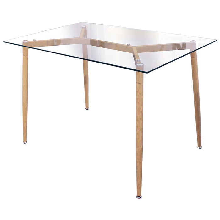 Home Deco Factory Mesa Comedor Essentiel Cristal y Metal Efecto Madera 75x115 cm