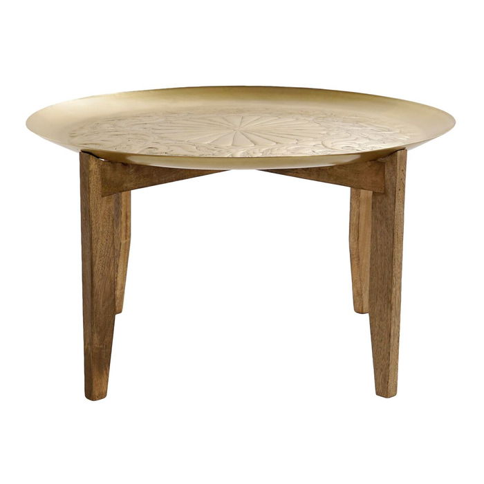 DKD Home Decor Mesa Centro Indio Dorado Natural Mango Laton 75 x 75 x 44 cm