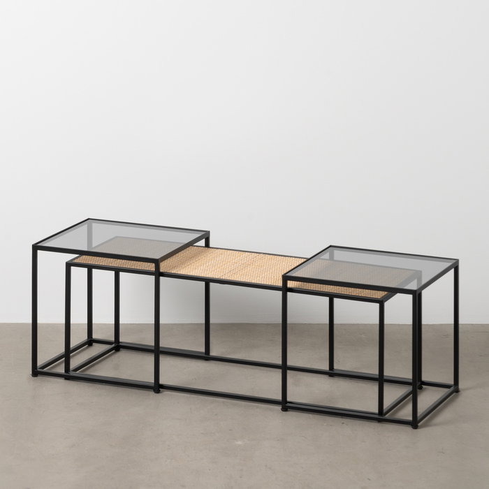 - Material: Hierro - Cristal - Ratán No Precisa Montaje 97,5X34X34.5 - (2) 40X38X39 cm