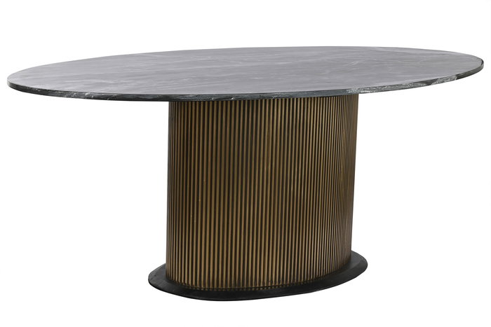DKD Home Decor Mesa de Comedor Ovalada Moderna de Latón y Mármol Negro y Dorado | Desmontable | 110x200x76 cm