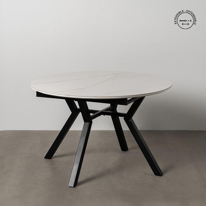- Material: Patas de Metal (Hierro) - Top Cerámico Imitación Mármol - Dm. Mesa Extensible, Largo Total 160 cm, Ancho: 120 cm