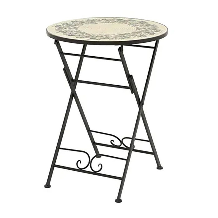 Outdoor Living By Decoris Mesa Atenas Plegable de Acero para Exterior e Interior con Diseño de Mosaico de Olivas, Negro, Ø58 x 75 cm