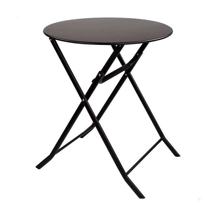 Mesa redonda plegable de jardín de Aktive Garden. Fabricada de metal, con estructura resistente a las inclemencias del tiempo. Perfecta para uso exterior e interior. Es ligera y se pliega de forma compacta y sencilla gracias al asa inferior incorporada que también permite transportarla con facilidad. La mesa mide 60 cm de diámetro y 70 cm de alto, ideal para 2 personas. Soporta un peso máximo de 75 kg. ¡Disfruta del exterior con Aktive!