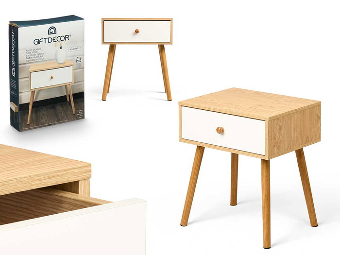 Opiniones sobre Giftdecor Mesita Auxiliar con Cajón Blanco Madera Chopo y MDF 40 x 30 x 47 cm