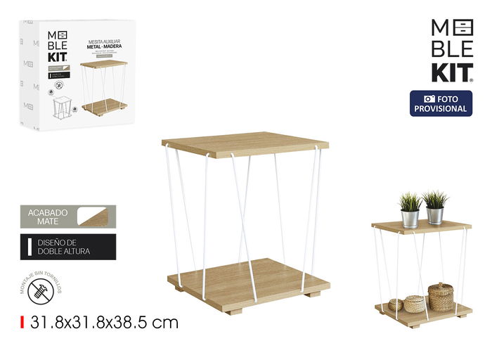 Mesita Auxiliar Madera-Metal White Moblekit