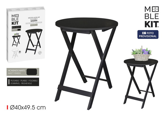 Mesita Auxiliar Pleg.Mad.Black 40Cm Moblekit