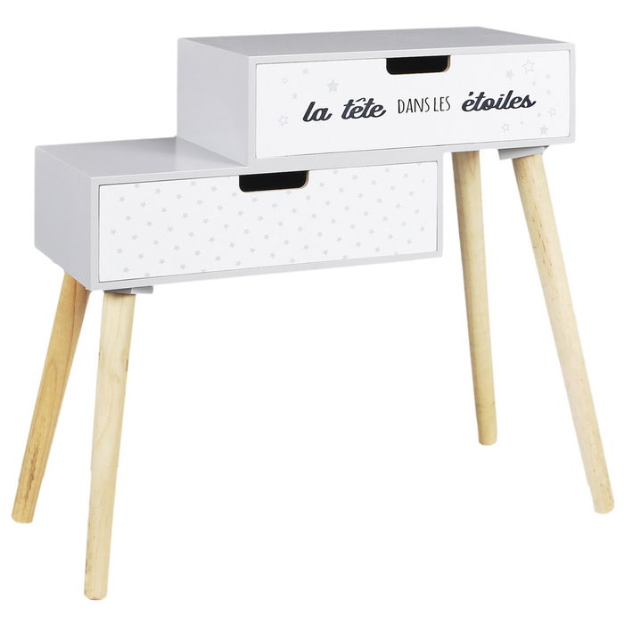 Home Deco Kids Mesita Infantil 2 Cajones Gris Estrellas 54,5x21,5x51 cm