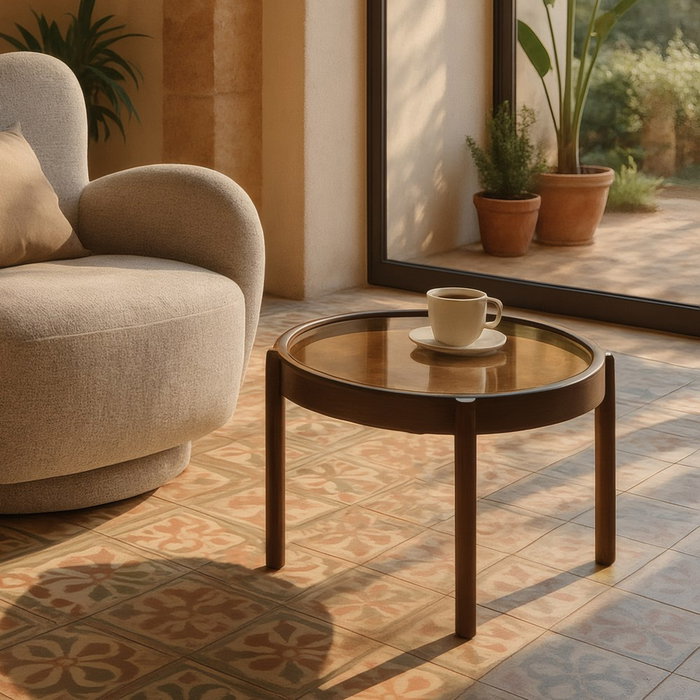 Mesita Marrón Oscuro Metal-Cristal 61,50 X 61,50 X 43 cm