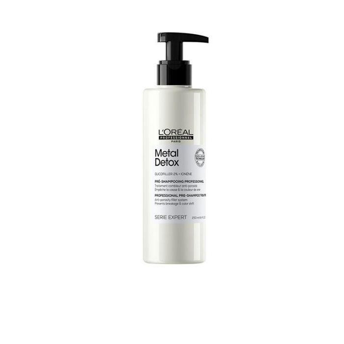 Descubre el poderoso METAL DETOX tratamiento pre-champú de L'Oréal Professionnel Paris, diseñado para transformar la salud de tu cabello. Este innovador producto está formulado para rellenar hasta 1 millón de micro roturas en solo una aplicación, gracias a su concentrado con un 2% de Glicofiller.