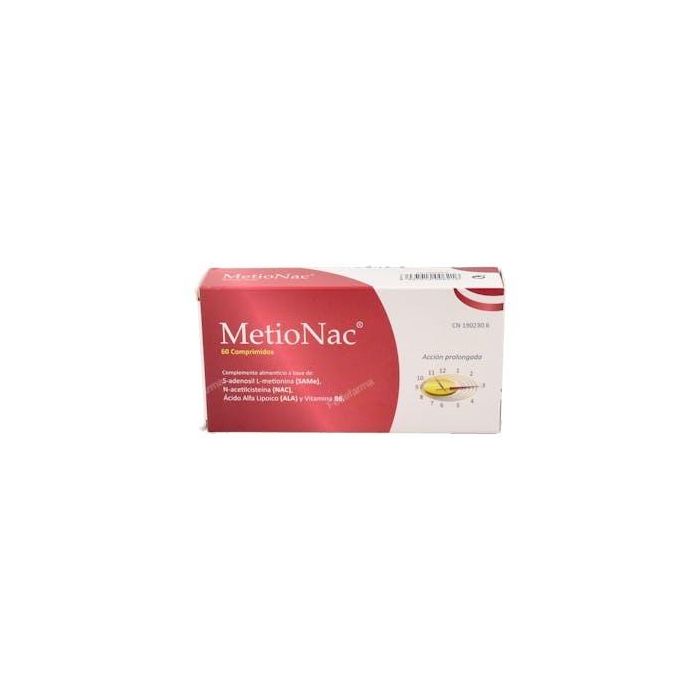 Indicaciones: Complemento alimenticio a base de SAME, NAC y ALA. Metionac comprimidos es un suplemento que contiene cuatro potentes antioxidantes que son esenciales para ayudar a la producción de GSH y a la protección del cuerpo contra los radicales libres oxidados. La S-adenosil-L-metionina-SAMe es un donante de grupos metilo en reacciones esenciales de metilación de proteínas, lípidos y ácidos nucleicos. La N-acetilcisteína (NAC) actúa como precursor de cisteína en la vía de transulfuración hepática, donando grupos reductores y protegiendo contra los radicales libres oxidados (ROX). El ácido tióctico (ALA) estimula la enzima gamma glutamil cisteína ligasa (GCL), que sintetiza glutatión a partir de cisteína, y media la recuperación de glutatión reducido a partir de glutatión oxidado. Además, el ALA es un ácido graso de cadena corta que contiene un grupo tiol que neutraliza los radicales y ayuda a recuperar glutatión y otros antioxidantes como Q-10, vitaminas C y E. Finalmente, la vitamina B6 (piridoxina PLP) es una vitamina hidrosoluble que induce la vía de transulfuración hepática mediante la activación de las enzimas CBS y CGL, evitando el aumento de metionina y contribuyendo al metabolismo normal de la homocisteína. Además, la vitamina B6 puede ser de utilidad en situaciones de cansancio y fatiga.
