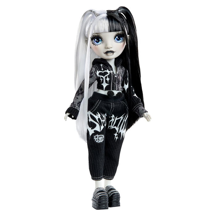 Shadow High vuelve para una íntima noche de chicas, con un estilo audaz y la moda monocromática que caracteriza a la gama. Heather Grayson se mantiene fiel a su llamativa paleta de grises, vestida de negro, blanco y gris de pies a cabeza. Lleva coletas largas y rectas monocromas, pestañas reales y ojos de cristal que dan vida a su personaje. Viene con cómodos accesorios para una noche de chicas, como colorete y una brocha de maquillaje para jugar a maquillarse, además de una tablet y un teléfono para que las niñas puedan ver programas, seguir tutoriales de maquillaje o hacer llamadas divertidas. Su larga melena puede peinarse con el peine incluido para jugar a la moda de forma creativa.