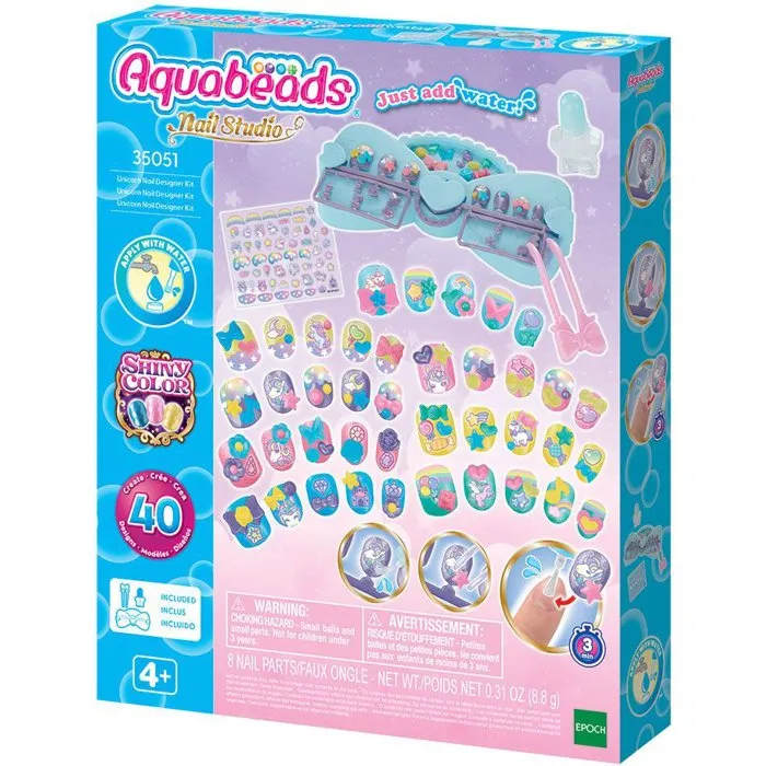Aquabeads 35051 Kit Diseño de Uñas Unicornio Nail Studio con Uñas y Decoraciones para 40 Diseños, Mesa de Trabajo, Pinzas y Accesorios para +4 Años