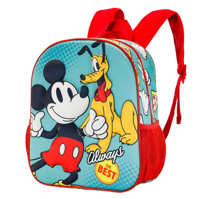Mochila preescolar con relieve frontal 3D. Compartimento principal con cremallera y forro interior. Dos bolsillos laterales de malla.
