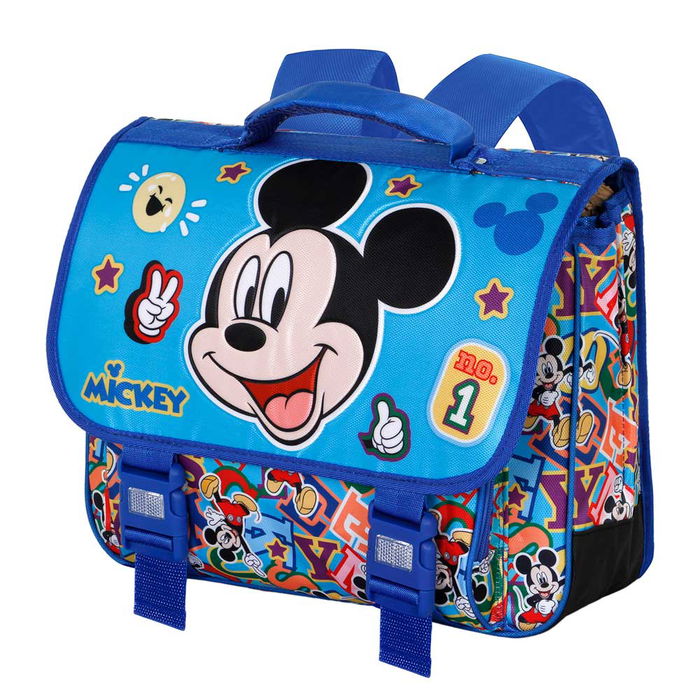 - Cartera escolar con solapa y cierre de hebilla