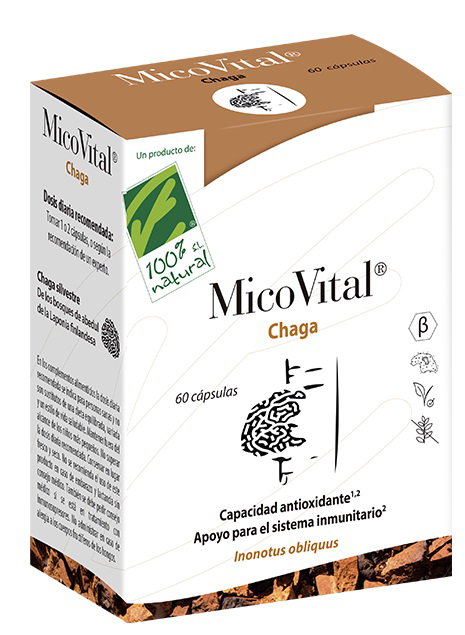 complemento alimenticio a base de las cabezas estériles del chaga silvestre (Inonotus obliquus), una fuente rica en polisacáridos (beta-glucanos) y triterpenos, con capacidad antioxidante.
