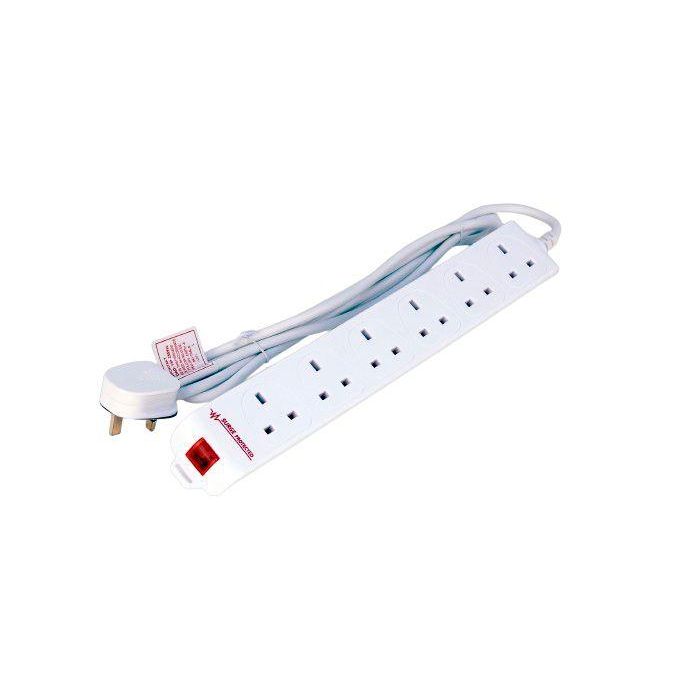 MicroConnect Regleta de Protección contra Sobretensiones de 6 Tomas UK 2M Blanca
