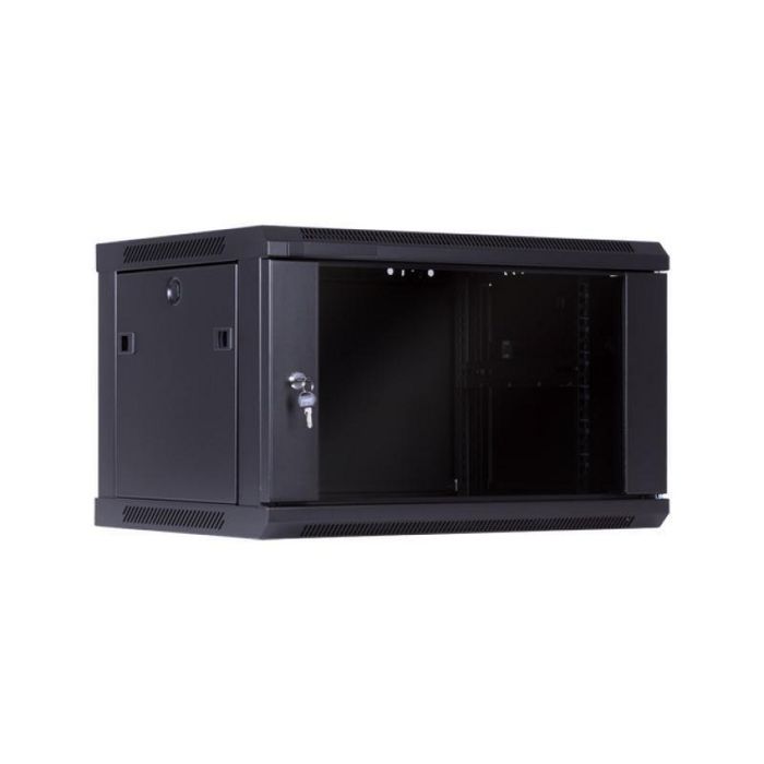 Se entrega TOTALMENTE MONTADO y embalado en Caja de Cartón. • Fabricado en chapa de acero de 1,5mm. laminada en frio. • Pintado al horno en Color Negro RAL 9004 (Mate). • Perfiles delanteros y traseros de 19" grabados con las medidas en U. • Puerta delantera de cristal templado ahumado color Gris de 5mm. y cerradura con llave. • Ancho: 600 - Fondo: 600 - Alto: 635 (mm). • Entradas para cableado en el panel trasero, partes superior trasera e inferior trasera. • Peso en Vacío: 18,5 Kg. • Cumple las normativas ANSI/EIARS-310-D, DIN41491, PART1, IEC297-2, DIN41494, PART7, GB/T3047.2-92.