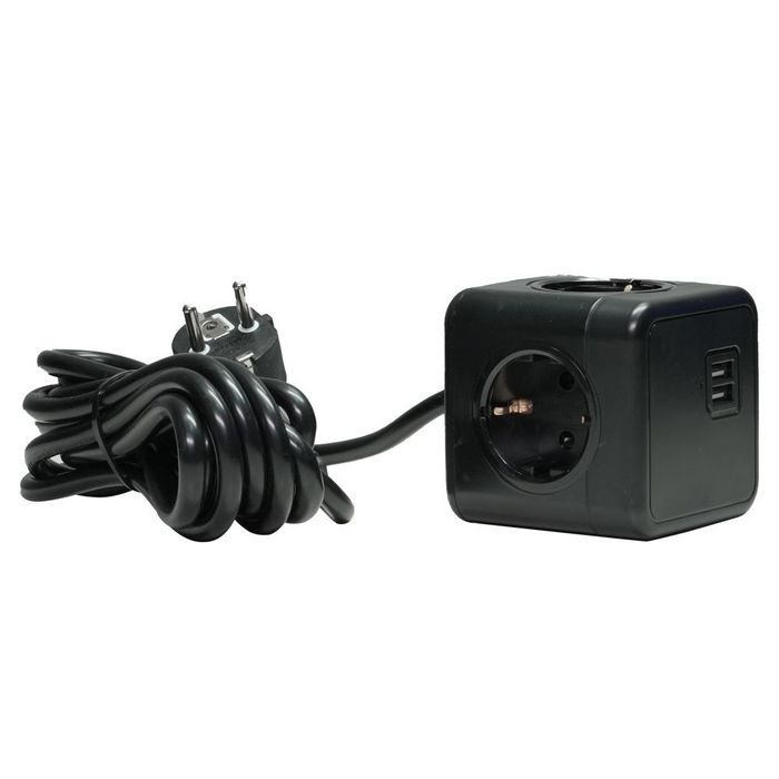El Power Cube Extended DUO-USB Negro es esencial para cualquier espacio de trabajo, hogar y oficina. Su forma cúbica única lo diferencia de cualquier otra regleta. Su diseño innovador lo ha elevado a un estándar diferente; lo que antes era una necesidad torpe y voluminosa ahora es un complemento elegante y eficiente.