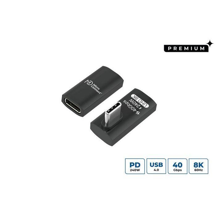 MicroConnect Adaptador USB-C Macho-Hembra en Ángulo Recto, 240W, 40Gbps, USB4 Gen 3x2
