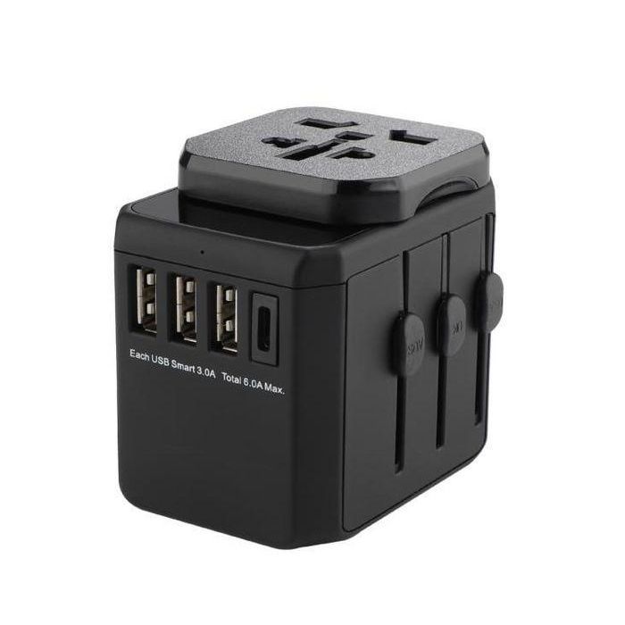 MicroConnect Adaptador de Viaje Mundial 3 Puertos USB A 1 Puerto USB-C Enchufe Universal EU