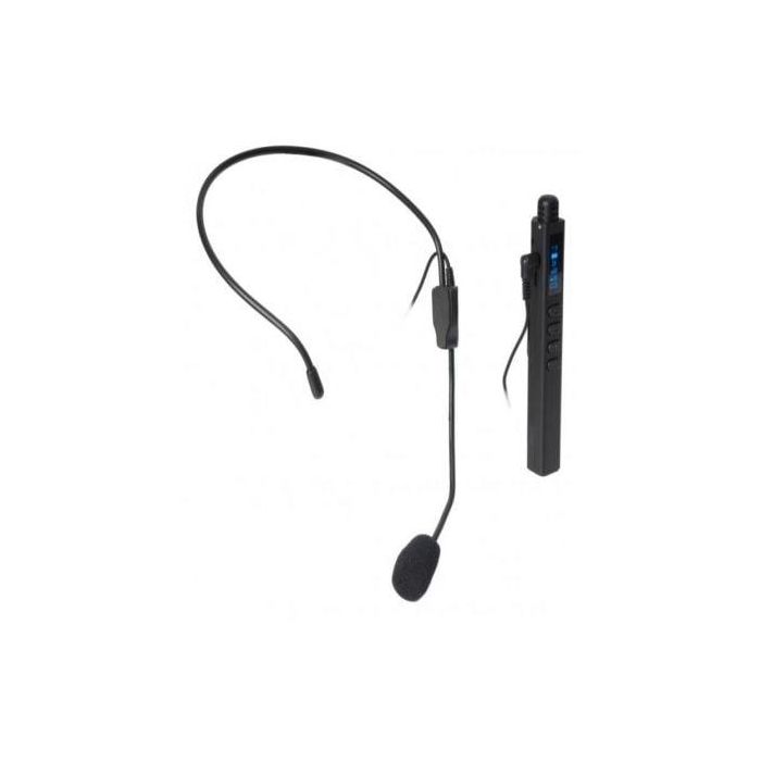 - Micrófono inalámbrico de mano/cabeza con cápsula de condensador electret unidireccional, batería recargable Li-ion, puntero láser y función de presentador de diapositivas.