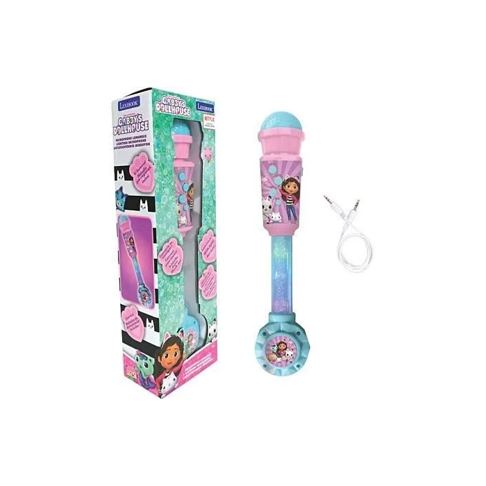 Lexibook Micrófono Gabby y la Casa Mágica LEX3380743105499 con tubo de luz, altavoz (entrada auxiliar), melodías y efectos de sonido