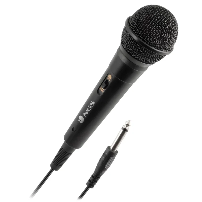 NGS Micrófono Karaoke Singer Fire Negro, Dinámico Unidireccional con Cable 3m y Botón On/Off, Conector Jack 6.35mm (1/4"), Ideal para Fiestas y Presentaciones