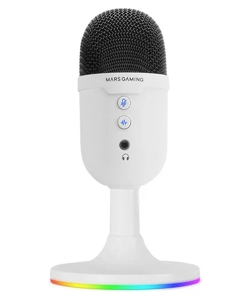 Mars Gaming MMIC-CX Micrófono de Mesa para Streaming y Gaming, Blanco, ARGB, Cancelación de Ruido ENC, 196kHz/24 bits, Cardioide, USB Plug & Play, Base Ajustable