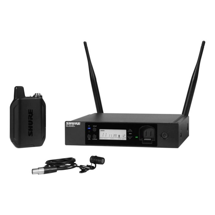 Shure GLXD14R+E/85-Z4. Tipo de micrófono: Micrófono de solapa, Principio transductor del micrófono: Micrófono de condensador, Respuesta de frecuencia del micrófono: 50 - 20000 Hz. Tipo de receptor: Receptor estacionario, Material de la carcasa del receptor: Metal, Tipo de antena: Desmontable. Tipo de transmisor: Transmisor de bolsillo, Material de la carcasa del transmisor: Metal. Rango de radiofrecuencia (RF): 2400 - 5800 MHz, Tipo de frecuencia operativa: Frecuencia ultra alta (UHF, Ultra High Frequency), Cantidad de canales: 11 canales. Autonomía: 16 h, Tipo de batería: Batería integrada