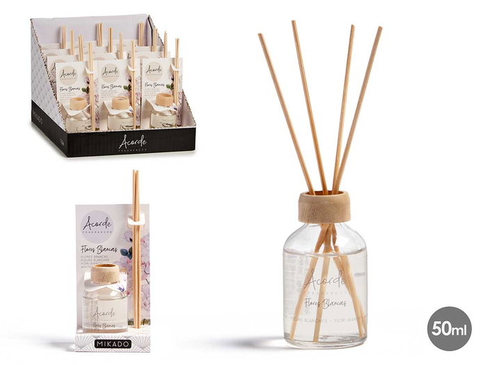Acorde Mikado 50 ml Flores Blancas Varilla Ambientador Difusor con Varillas 7x5x17 cm (Set de 12)