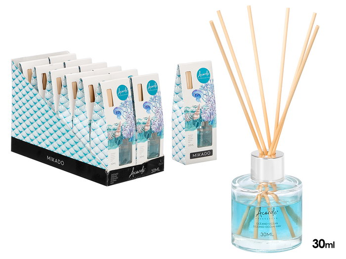 Acorde Mikado Oceano 30 ml Fragancia Difusor con Varillas Vidrio Azul 7.5x20x5 cm (Set de 24)
