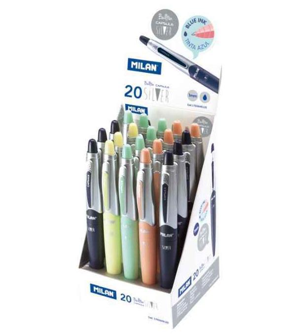 El bolígrafo Milan Capsule Silver es una elección perfecta para aquellos que valoran la practicidad y el estilo. Su diseño elegante y moderno en color azul, lo convierte en un accesorio sofisticado tanto para el ámbito laboral como para el día a día. Además, cuenta con 4 colores surtidos en un expositor de 20 unidades, lo que lo convierte en una opción ideal para oficinas y negocios que buscan ofrecer variedad a sus clientes. Con el bolígrafo Milan Capsule Silver, podrás escribir con fluidez y precisión sin renunciar a un toque de distinción.