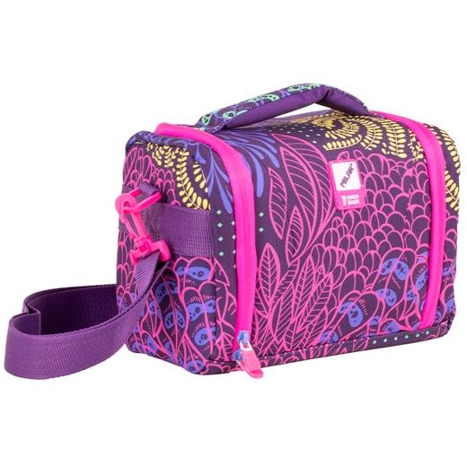 Bolsa isotérmica porta alimentos de gran capacidad. Serie especial Fireflies, un estampado creado por diferentes formas de vegetación y hojas, que representa el entorno donde viven las luciérnagas. Los colores son tan brillantes como la luz de las luciérnagas: lila, fucsia, amarillo y verde, que destacan sobre una base lila oscuro. Cremalleras y detalles en color fucsia. Interior aislante térmico (frío/calor) para una mejor conservación de los alimentos. Apertura total para una mejor accesibilidad y limpieza. Correa regulable y extraíble, asa superior. Composición tejido: exterior de poliéster y forro interior isotérmico (P.E.V.A.). Medidas: 24,5 x 20 x 16 cm. Capacidad: 5 litros.