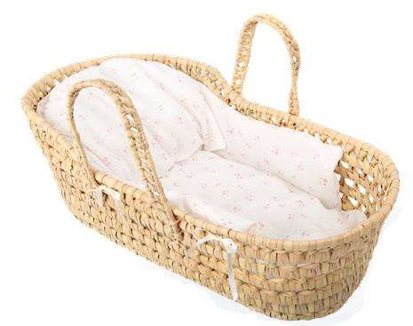 Mimbre Canastilla con Dos Asas, Protector, Colchón y Cojín para Muñecas Arias, 26x40x19 cm